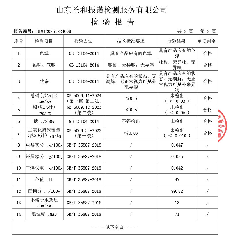 白砂糖检测报告