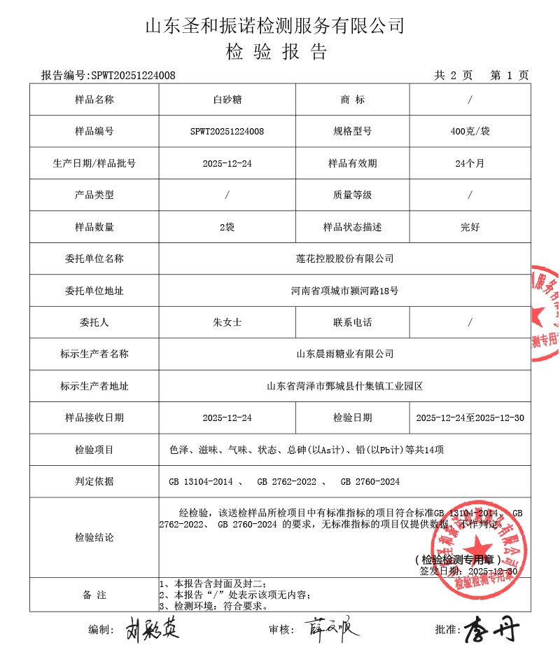 白砂糖检测报告